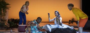 Depuis qu’elle en pince pour Narcisse, Écho ne cesse de répéter les cris de désespoir du jeune homme « jusqu’à se transformer en rocher et ressusciter lorsque l’on vient soupirer auprès d’elle et mourir, et ressusciter lorsque l’on vient soupirer auprès d’elle et mourir, et ressusciter lorsque l’on… » Assez ! Parce qu’il est temps d’aider Écho à mourir pour de bon, la metteuse en scène, comédienne et chanteuse, Vanasay Khamphommala, s’entoure d’une distribution internationale et détonante pour érotiser le plateau dans un esprit performatif et nous guérir de la douleur d’aimer. En explorant à nouveau, après Vénus et Adonis et Orphée Aphone, Les Métamorphoses d’Ovide, la Cie Lapsus Chevelü continue de vouloir « transphormer » le monde pour inventer « l’esthétique de l’amour à venir ». Humour, chansons d’amour, scènes tragiques, sitcom et culture laotienne, traversent cette écriture hybride à l’écart des normes. Une invitation radicale à bouleverser nos représentations de l’amour pour le surgissement de beautés nouvelles.