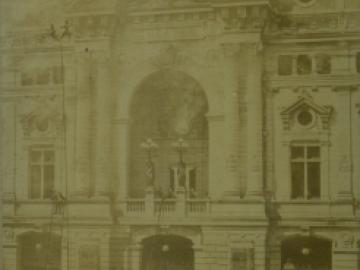 - La Salle des Pas-Perdus du Théâtre (actuelle Salle Jean-Vilar) ayant été épargnée totalement par l'incendie, on aménage un théâtre de 400 places avec une scène qui donne les spectacles ci-dessous, à partir du 30 mars 1884.